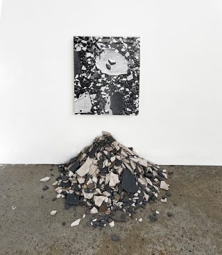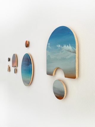 Yellowcake is an investigation into the timeline of an environment's resilience and changing landscape in the face of human industry. The Mary Kathleen mine site, wayward of Mt Isa, is the catalyst for Lee's dogged and thorough research and reflection on the landscape's evolution and the impact of the human imprint on the natural environment, even decades later. The body of work consists of Lee's signature oil painting; loose and gestural composition of brush strokes paired with alternative materials symbolic of the items found in the abandoned township. Ceramic tiles, photographs from the site on perspex mirror treated with epoxyglass, and dibond material exist in circular forms and atypical shapes reminiscent of the formation of machinated parts and industry impressions left behind.